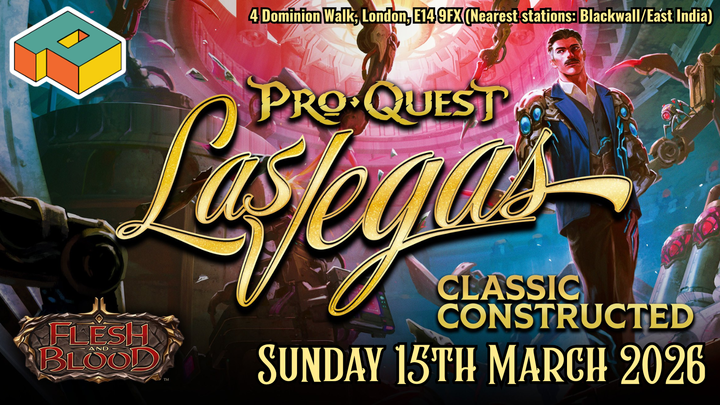 Pro Quest Vegas at P9 Card Game. Earn your chance to play at the Pro Tour in Vegas July 2026! CLASSIC CONSTRUCTED FORMAT! Registration from 10. Play starts at 11 sharp. This is a COMPETITIVE RULES ENFORCEMENT LEVEL EVENT. Judge(s) will be in place to maintain play quality. Please submit your decklist through the function on GEM. Paper decklists will be accepted in person prior to the event beginning. 5/6 rounds of Swiss with a cut to top 8.